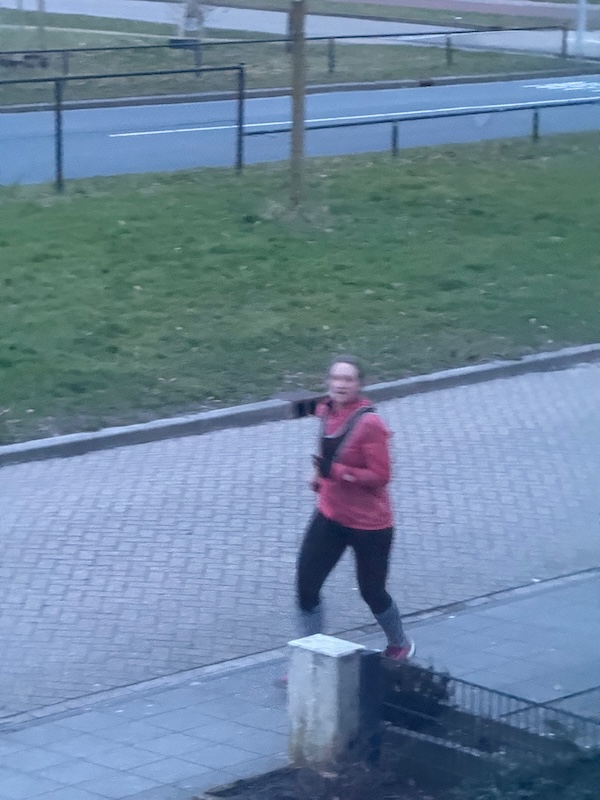 Ik had wind tegen. Het was best koud. Eerst over het spoorbaanpad opstarten. Het ging wel lekker, qua gevoel en tempo. De route spoorbaanpad zou te kort zijn, dus door naar ‘Willems route’. Ik zag wel wat op tegen de snelle kilometer. Maar ik deed gewoon mijn best en ik denk dat 5:13 op dit moment heel netjes is. Er zaten wat bochten in, want ik moest de route verder oplengen. Even wandelen en dribbelen en dan 200m aanzetten. Vind ik lastig. Een minuut. Dat is een leuk richtpunt! 200m wandel-dribbel. De rest van de 200tjes telde ik mee. Of probeerde te kijken hoe ver het zou zijn, maar dat is moeilijk voor me. En daarna dan even wandelen en een punt uitkiezen tot waar.