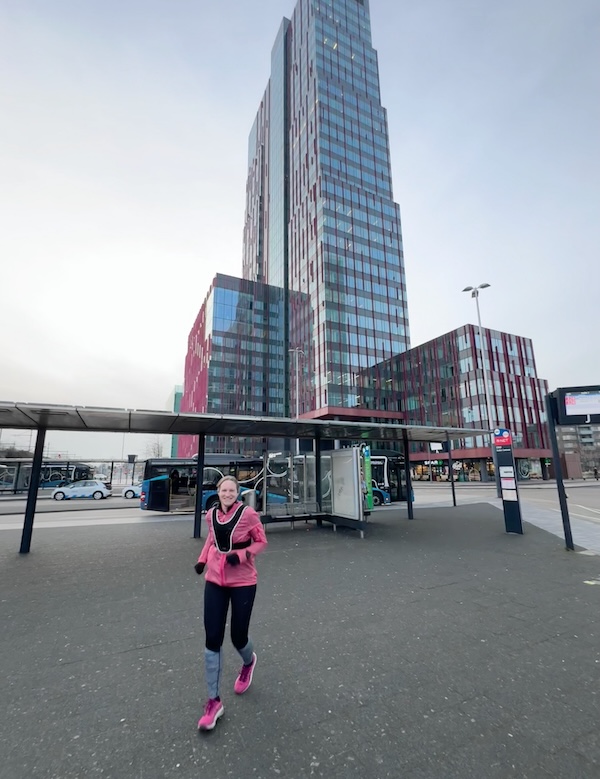 Vanaf het werk naar huis lopen. Ik had bedacht dat ik het lopen zelf maar weer leuker moet maken; niet elke keer hetzelfde rondje. Vincent kwam mijn spullen ophalen. Kon ik me de hele lange, onrustige en onstuimige dag verheugen op lopen. De training was 20 minuten inlopen, dan een km op 5-10km-race tempo en dan 6×200 hard en daar tussen 200 rust.