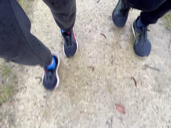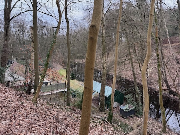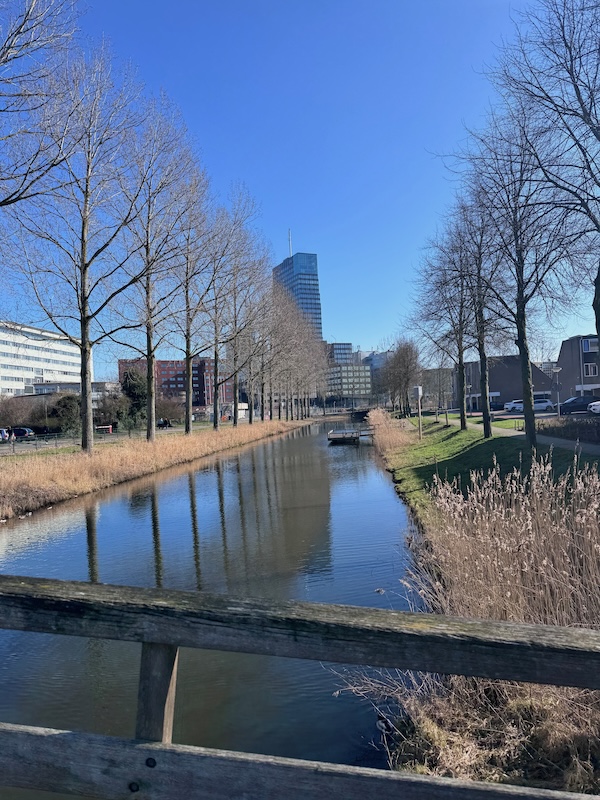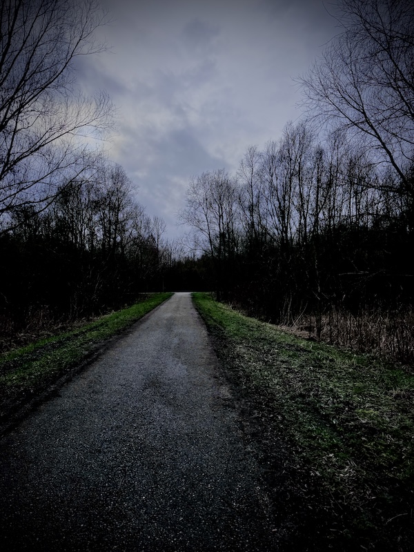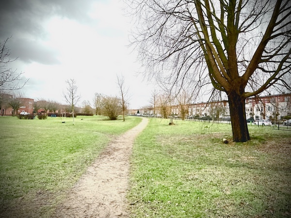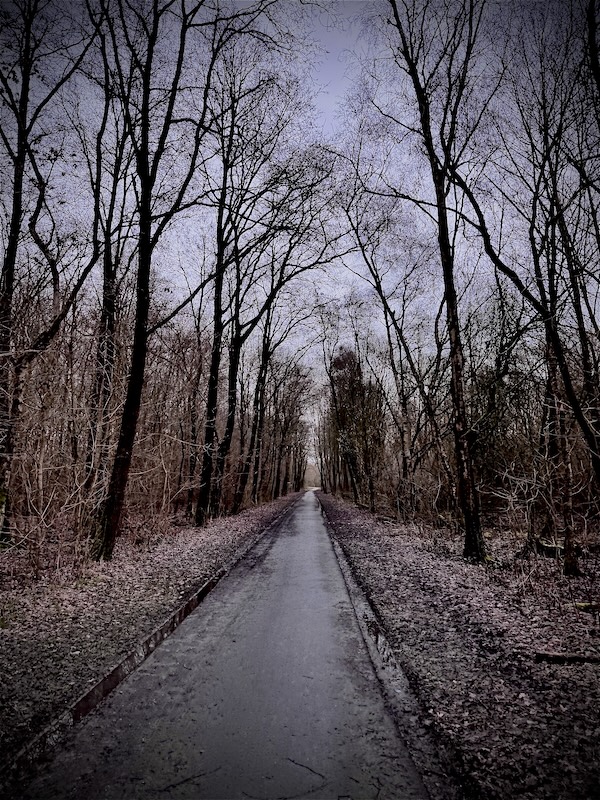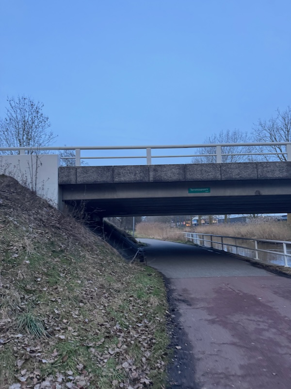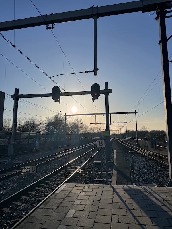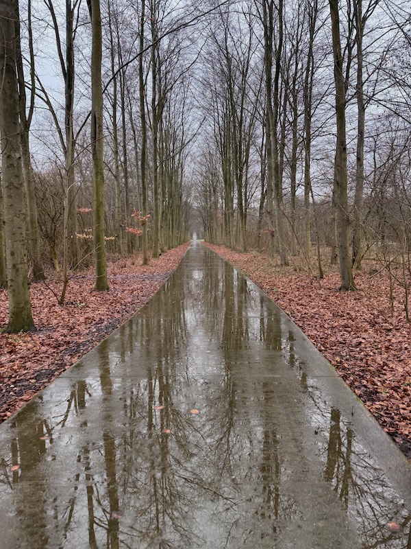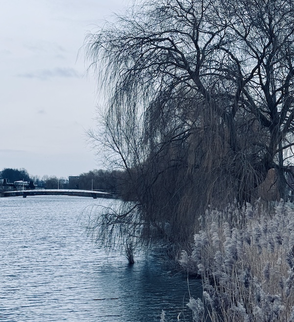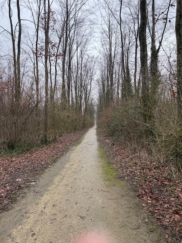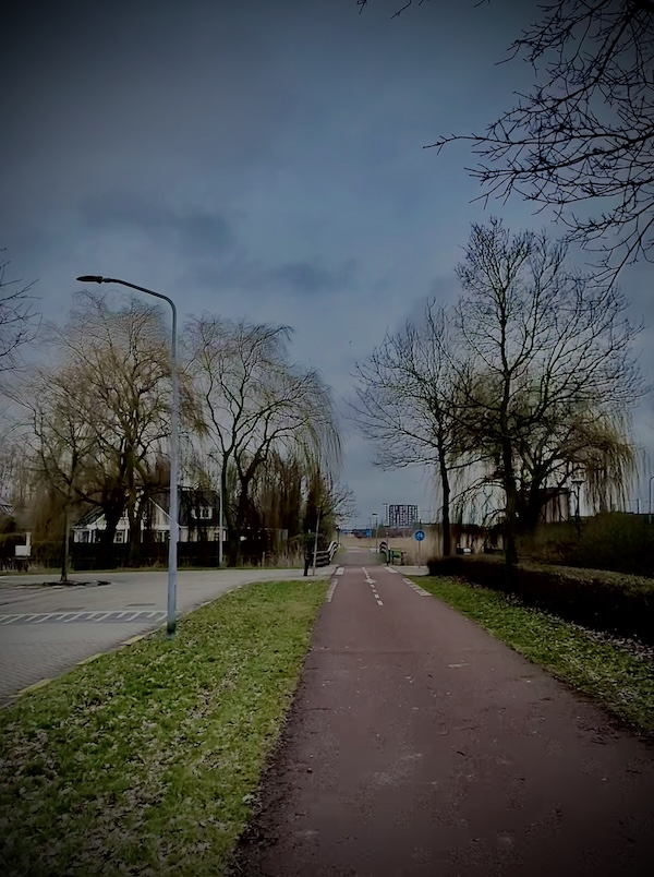 Samen met Vincent. Echt zo’n ingewikkelde voortkabbeldag vol met net teveel werk en regeldingen en ticketjes en alles. Ik ben blij dat bijna alle wijwijzer websites om zijn, maar dan krijg ik mail: ‘er is iets mis, bel me’, dus dat doe ik gelijk. Maar het is simpel te verhelpen. Vincent komt net thuis en hij gaat mee wandelen. Rob vindt het te koud. Ik werk me vandaag niet over de kop. Gewoon eventjes adem halen en appen en een route zoeken voor morgen. Maar wel alles organiseren en in de smiezen houden. Het wordt vijf uur. Op deze grijze ijzige dag.