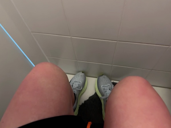 We doen eerst een blokje warm worden en dan… 3 minuten hardlopen. Ik ga even iets verder in plaats van veel keren. Dan een circuitje met 8 oefeningen. Het is mij allemaal best en ik doe ook wel een béétje mijn best, maar alle zij ontbreekt en het komt ook maar niet. We doen nog een keer het circuitje. We gaan weer rennen, maar slechts 2 minuten hoor! En dan buik, billen en benen. Ik doe het halfjes mee. De zin is op, de bui van slag en ik ben er klaar mee. Vincent komt langs na het hardlopen. Thuis snel naar de 🚾. Ik heb niet gezweet.
