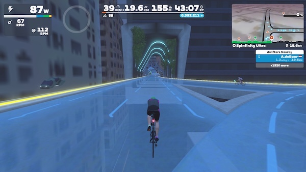 Ik probeer nu maar mijn eigen PRs te verbeteren en de brug op lukt dat ook nog! Ik vind het grappig om om te draaien en gelijk weer terug te gaan. Ik fiets een stukje op met een meneertje. En ik tel af: de kilometers 1 voor 1 wegstrepen. Ik had al lang geen zin meer en voor deze route staat 50 minuten. Ik ben met 3 kwartier klaar natuurlijk. Op Garmin heb ik de 2 uur volgemaakt. Dat is voldoende voor vandaag! Ik maak 20 km vol en al met al heb ik 56 kilometer gefietst. Garmin noemt het slechts 45, maar die telt niet goed. Zwift telt wel alles mee. Ook 414 hoogtemeters. Met een gemiddelde van 27,8. Ik vind alles best. Ik denk echt niet dat dit in het grote trainingsplaatje veel heeft bijgedragen, maar Brave Anke heeft het gedaan. Showed up.