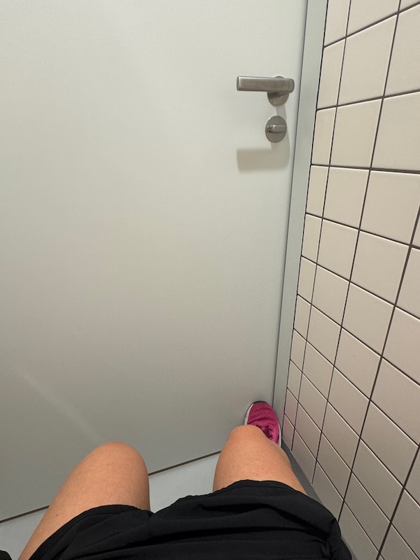 Baan 3 volgen voor de afstand! De 300 en 400 moet ik tellen op ademhaling en dan blijkt 1 op 3 eigenlijk helemaal lekker zwemmen. Beter nog dan 2op1. En zo ga ik wel iets rustiger. Het gaat goed, maar mijn energie gaat wel omlaag. Midden in de laatste 200 moeten we stoppen omdat er nog een startoefening is voor de triatlon. Maar ik vind het te confronterend en niet leuk en ik heb lang genoeg gezwommen. Kan ik even rustig mijn haren wassen en met HB kletsen. Is er toch iemand die zo lief is om te luisteren! Ik haal het puntje van mijn been af. Misschien toch een teekje? Maar ik kan het niet zien, echt niet.