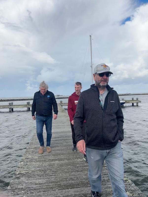 Naar de expo. Kletsen met deze en gene. Terug naar de wisselzone. Ik loop door naar de flats. Vincent laat lang op zich wachten. Erge spanning. En dat ie dan roept: hou niks binnen. En dan even bij Z kijken en met Timo S kletsen. Over de Hardman, heeft ie het opgepikt! Huh?! Ik zag Vincent op de hoek over de pier! Het werd steeds donkerder.