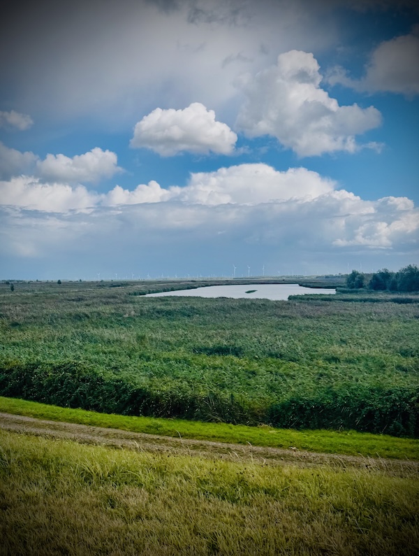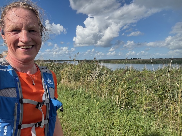 Nog een keer 1800. Het lukt me prima! Echt onbegrijpelijk. En niet door te trekken naar een marathon. Langs de plassen is het práchtig, zon, wolken, regen, wijdsheid. Ik stop nog even in de rust voor een foto. Niet omdat het moet, maar omdat het kan.