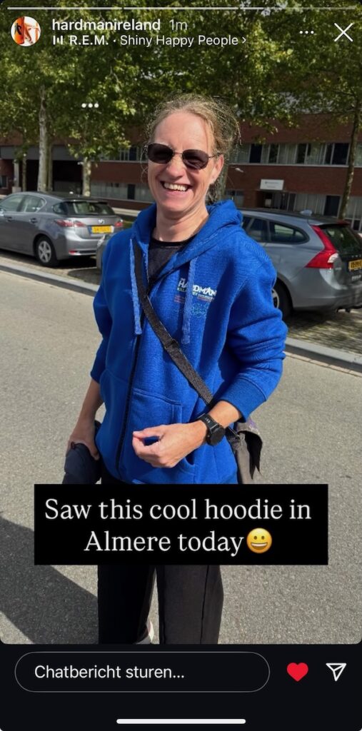 vannacht om half 5 waren we thuis. 2 nachten heel slecht en weinig slapen hakken er in. Maar er moet opgeruimd worden en de bank moet helemaal schoongemaakt worden door de kat. Uiteindelijk de hele dag wassen gedraaid. Alles bijgewerkt en net iets teveel gesnoept. Een ruime kilo aangekomen. Het is warm, maar door zo weinig rust is alles een beetje wazig en raar en onwerkelijk. Mijn hart en hoofd liggen nog in Ierland. Waar de mensen niet hoeven uit te dragen hoe moeilijk ze het hebben om geweldig te zijn. Ik heb verslagen van Hardman deelnemers gelezen die niet eens spraken van storm of regen! Ik zie alle geweldige nederlanders die fietsen (allemaal 50+km) op strava klagen over de wind. Dacht: dat ga ik dan maar eens zelf voelen! Nou fietsen al die mensen nog 29+, dus ik weet niet waar ze over janken. Ik geniet zelfs in de stad van de rust en een fietspad! Ik bedoel: geen drukke weg met inhalende auto’s op een meter van je. Overzichtelijk, geen verborgen hegjes en uitgangen. Ik merk ergens wel dat ik naar links uitweek toen ik even niet oplette! Vermoeidheid…