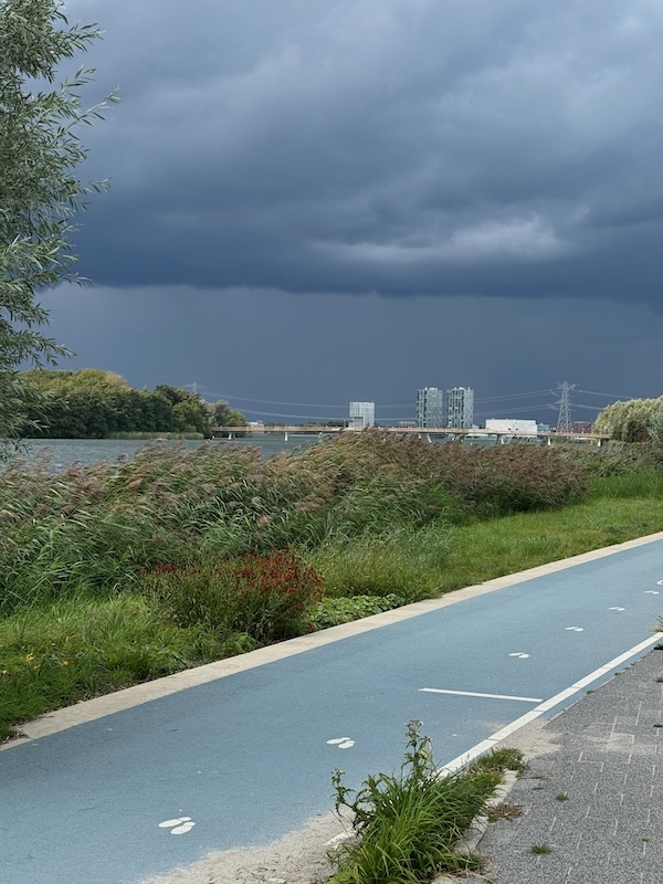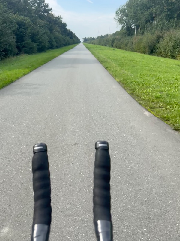 En dan wind mee dus en dat is lastig in de laagste versnelling 🥴 maar de kleuren zijn mooi, het fietspad leeg en goed begaanbaar en het fietst oke.