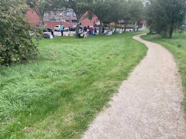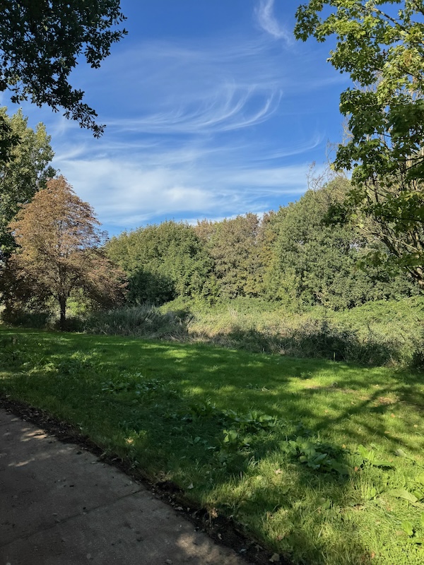 Dan hardlopen. Omdat het kan, hopelijk. Ik moest de stappen halen en ik dacht: ik ga maar kijken of het lukt met lopen. Waarom niet? Er is rommelroute in de buurt, dus wat levendigheid. Ik ga niet ver of lang, hartslag moet heel laag blijven, tempo mag laag blijven. Het gaat eigenlijk wel prima. Tempo valt me mee met de extreem lage hartslag. Ik zie de meneer van de honden en die zegt: “doorlopen hoor, want het gaat regenen.” Vast goedbedoeld, maar juist regen is mij prima! Door het park terug.