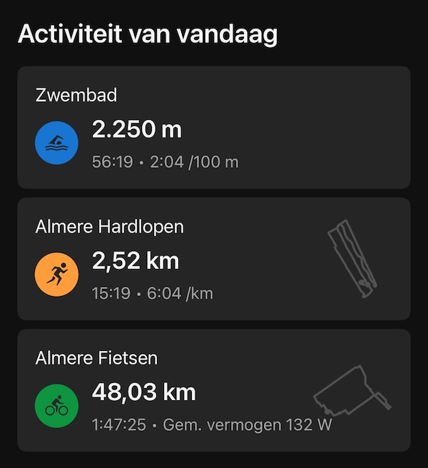 Heb ik het weer alledrie op 1 dag gedaan: kalmpjes gefietst, klein beetje gejogd en dumbo gezwommen.