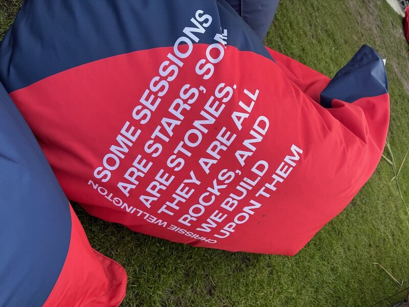 Ik wacht tot een duitse haar vriend heeft gefilmd. Vincent gaat eten. Ik loop om en het regent weer. Blijft toch gek voelen, dat dit slecht weer is… vincent zien we nog een keer en dan even zitten in de zon en daar is Vincent alweer. We lopen langzaam en kletsend met deze en gene weer terug naar de wisselzone en we hangen lang bij movethelimit. En dan de spullen halen en weer regen. Dan naar de auto lopen en naar huis. Het was een volle dag en dan moet mama nog alles opruimen, de was doen, kattenbakken. Ik had een paar krampen vandaag. En 24k stappen gezet! Dat voel ik ook in mijn lijf!