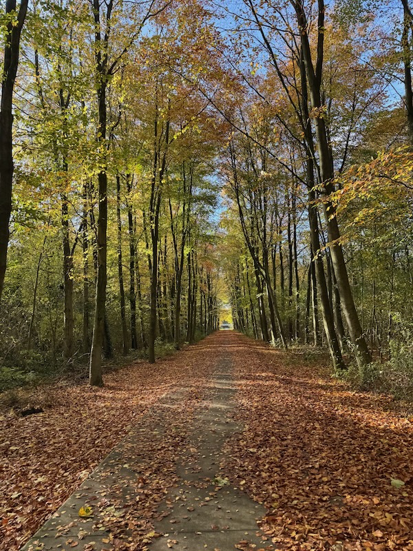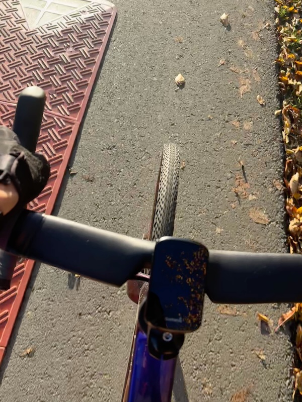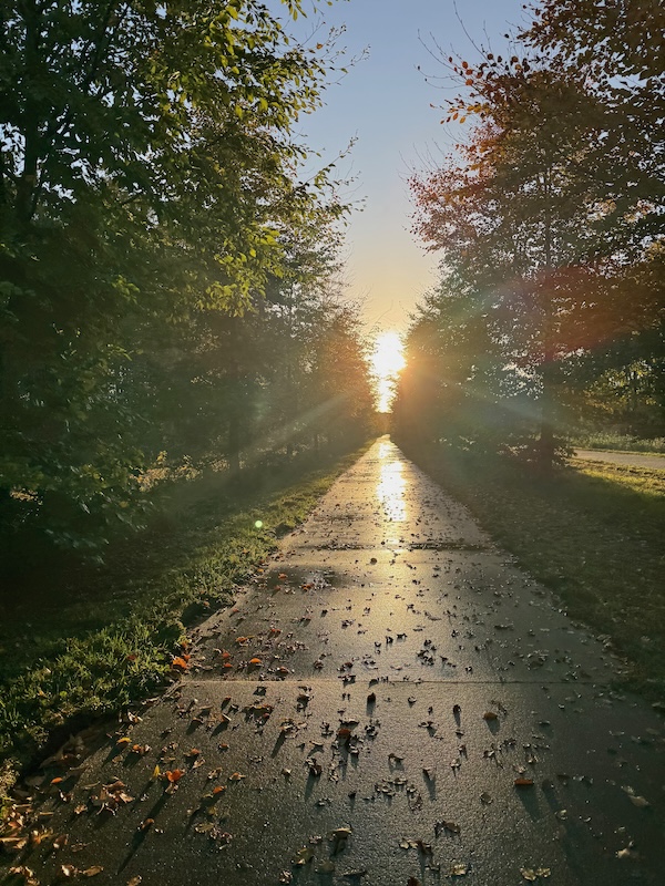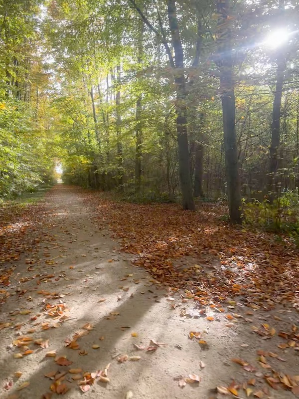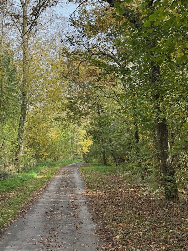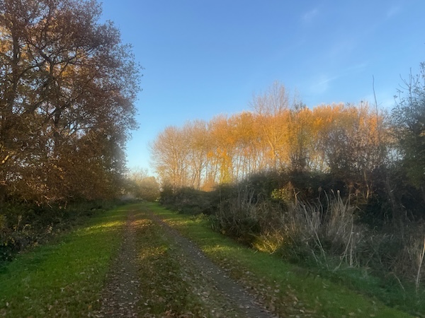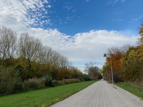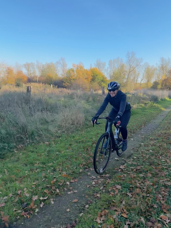 Nou, open! Maar goed geschikt voor een gravelbike! En het pad daarna is leeg en vreselijk mooi ook. Nu het er nog is, erger ik me veel minder aan de gaten en blaadjes. Ik geniet gewoon van de zon, de herfst en het moment.