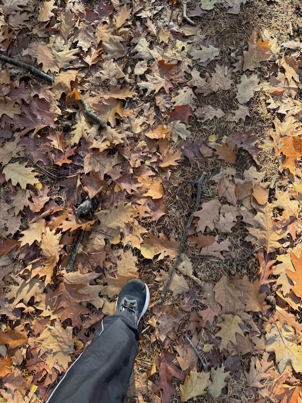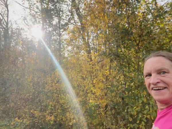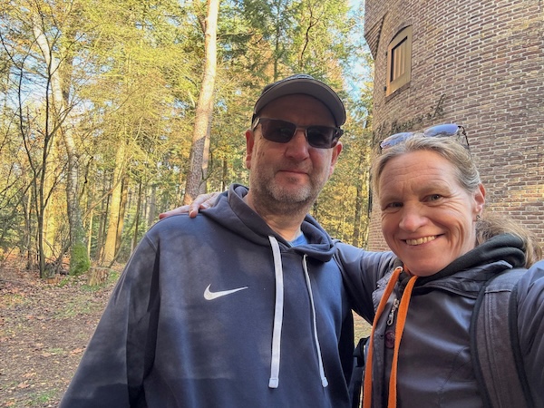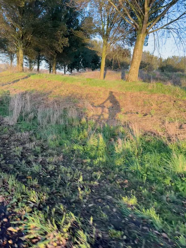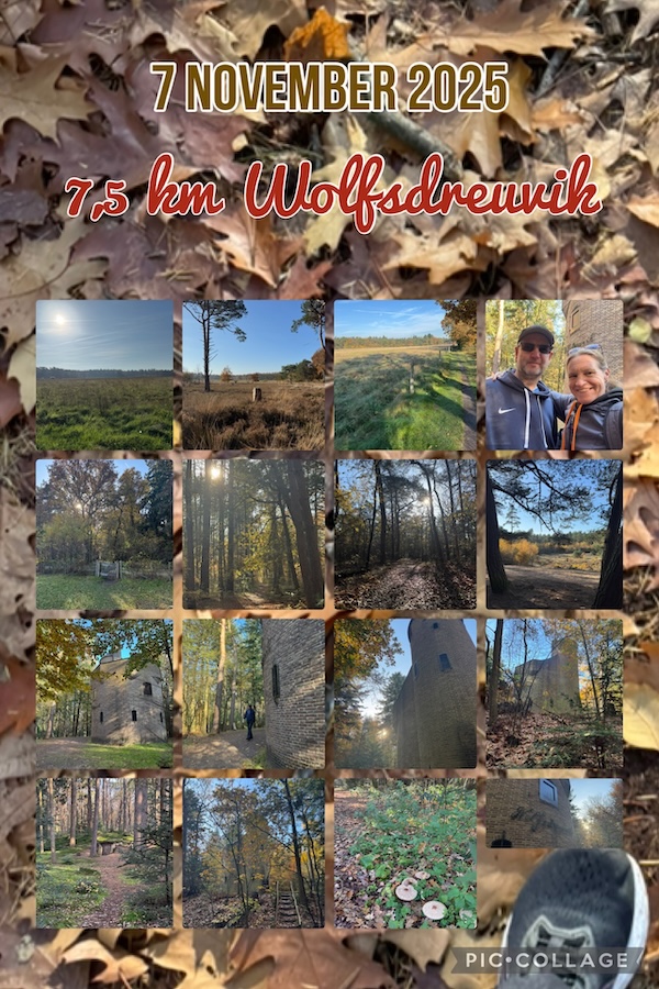 Ook nog even langs de kuil. Na 7,5km was het wel genoeg ook. Mijn benen kunnen dat prima, maar ik ben nog wat snel moe. Ik weet niet of dat ‘herstel’ is of gewoon de hormoonspiegel of de werkdruk of slechter slapen. Ik erger en grinnik om die geweldige trainster die het oneerlijk mooi verteld en zich voordoet als expert over hormonen. Mijn trainster reageert gelukkig wel goed en zeer begripvol dat ze mijn (marathon)prestatie op waarde schat en ze meent het. Moe belt nog, die kijkt al uit naar me te zien volgende week, maar ze moeten ook naar de kapper midden op de dag. Ik heb heerlijk, echt heerlijk met my love gewandeld en echt genoten van dat hij vandaag even thuis is! En ik heb een paddestoel 🍄🟫 gefotografeerd!