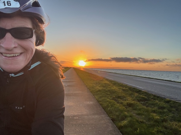 Dat was een stuk beter met fietsen dan gister! Vraag me niet waarom, want we hebben vannacht slecht geslapen, omdat schoonma om 6 uur belde dat ze hulp nodig had. Het werd uiteindelijk opgelost, maar we waren al onderweg. In de ochtend zijn we ook in Hilversum geweest. Geen beste nacht, maar goed genoeg. Ik zou uiteraard goed moeten eten en drinken vandaag, maar ik weet hoe weinig het werkelijk uitmaakt. Ik heb weinig fiducie in de marathon. Het ergste is dat ik me veel te slecht voel: iedereen kan dat toch met 4 uurtjes, wat ga ik dan doen? Wie kan er trots op mijn worden? Ik leg alles klaar, koop cola, doe alle was. Enerzijds is het ‘maar’ een marathon, aan de andere kant: die zijn al vaker moeilijker gebleken dan een triatlon. Vincent is de hele avond voor school weg. En nu heb ik weer gezien hoe moeilijk het is om oud te zijn en ik weet als geen ander dat het van dag tot dag enorm kan verschillen. In mijn meNOpauze. We beginnen met de Lego en dan wordt het droog. En zelfs zonnig! Na een dag regen. Ik ga liever buiten fietsen. Op de brede banden van de gravelbike, maar die heeft geen wattagemeter, dus het aanzetten van de training is zinloos en zal slecht zijn, maar ik heb dan tenminste een richting! Het is erg mooi met de zon, ook al heb ik ‘m fel tegen.