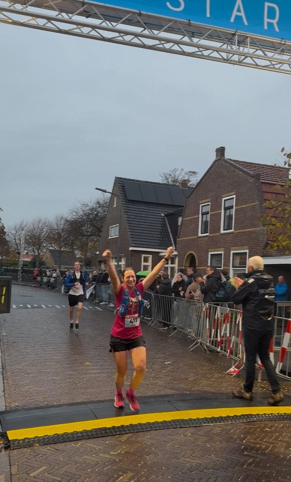 Ik heb nergens meer last van. Goed geslapen. Geen trekkend spiertje meer of niks. Zelfs de schuurplekken zijn bijna weg. Blauwe tenen zijn een statussymbool. Het is alleen zo grappig dat mijn collega’s totáál niet snappen dat ik uitroep dat regen, wind tegen en strand na 35km pas écht leuk is. Grappig he. Ik voel me relaxed vandaag.