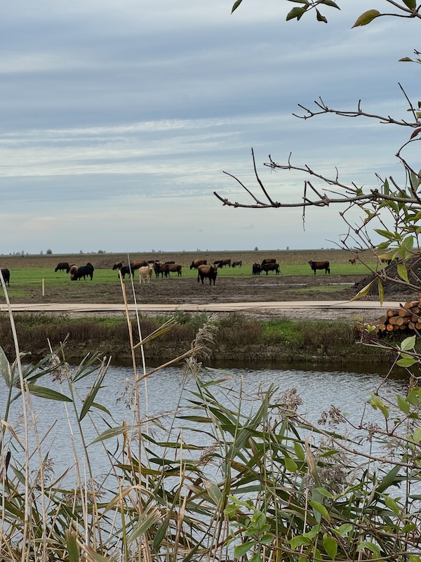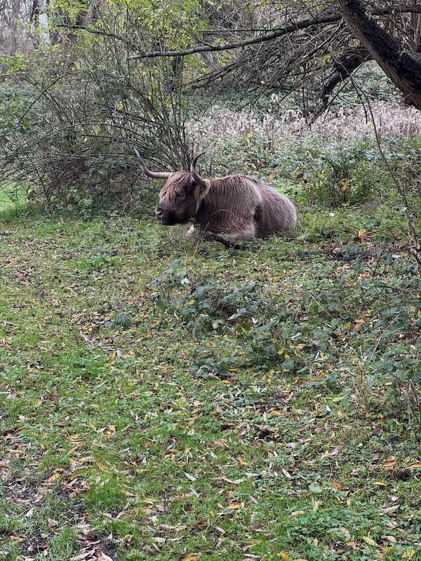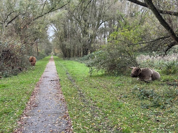 Ik ken het uitzicht, ik ken de weg, ik ken alle bochten en hobbels. Het is niet zo dat ik het niet leuk vind, maar ik geniet er ook niet echt van. Ik zit net zo lief met een chocoladeletter en mijn boek op de bank. Maar dat doe ik de rest van de middag wel. Ik stop even bij de runderen die daar lekker liggen te herkauwen.