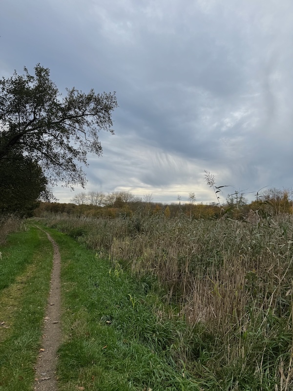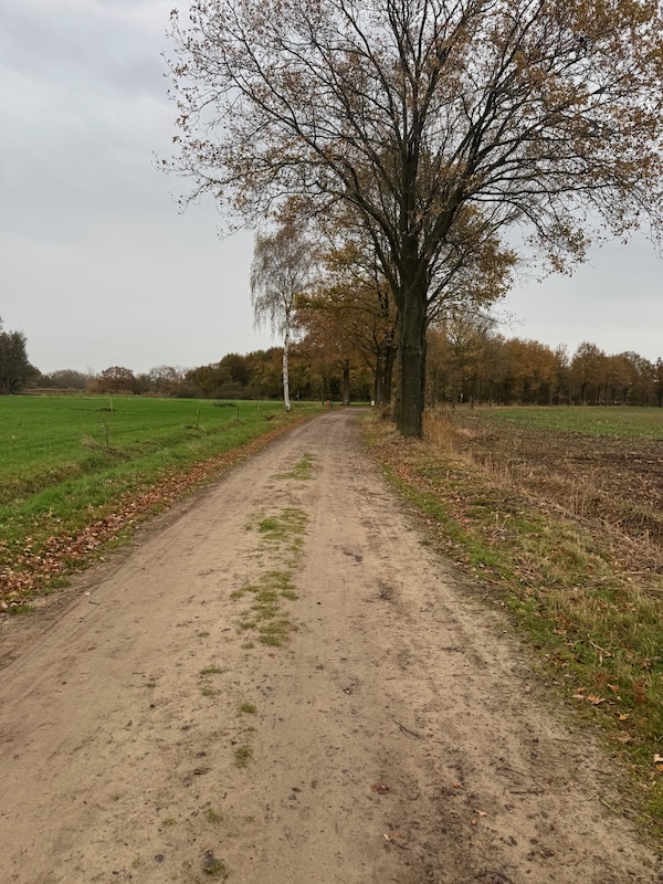 Het hesje is top, de oortjes ook. Ga ik het landelijke terrein op, belt ma. En legt op. Weer even stoppen. Was niks aan de hand. Dan rust. Op de wandelaars na. En daarna zandweg. Helemaal heerlijk! Had ik even nodig, wat natuur.