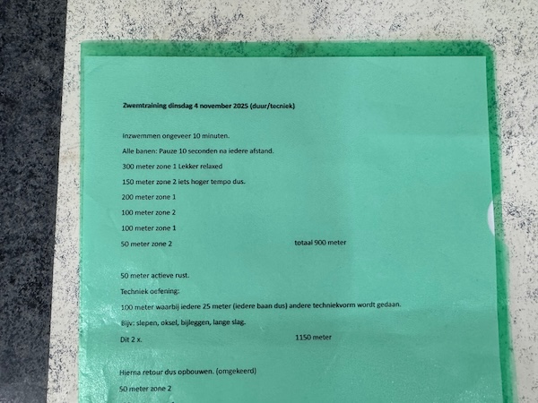 En dan nog uitzwemmen. Hahaha. Voor zone 1 was dit best hard vond mijn lijf. Zone 2 ook. En toen ging het ineens weer veel trager of dat lag aan mij, weet ik veel. Ik vond het wat zwaarder dan vorige week, maar dat was vooral fysiek. Duurtraining met techniek en toen vond ik het mooi geweest.
