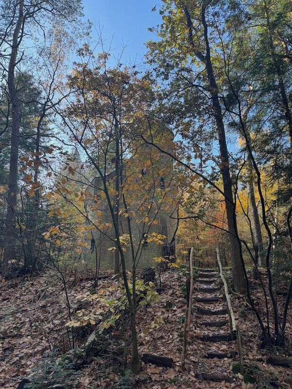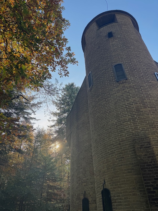 We hebben er even gezeten. Stilte, rust en zo mooi met dat groene mos en het torentje. En lekker saampjes. Kletsend.