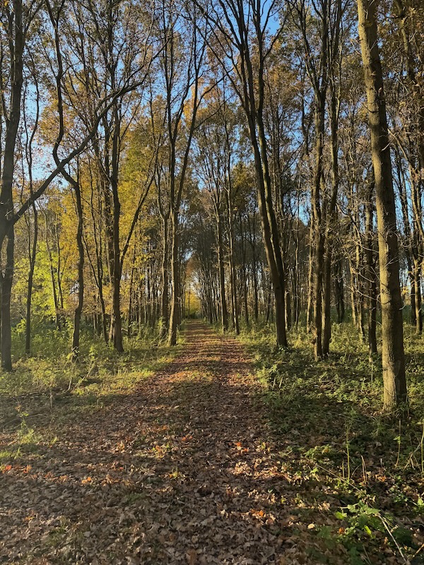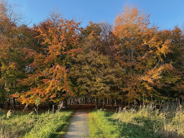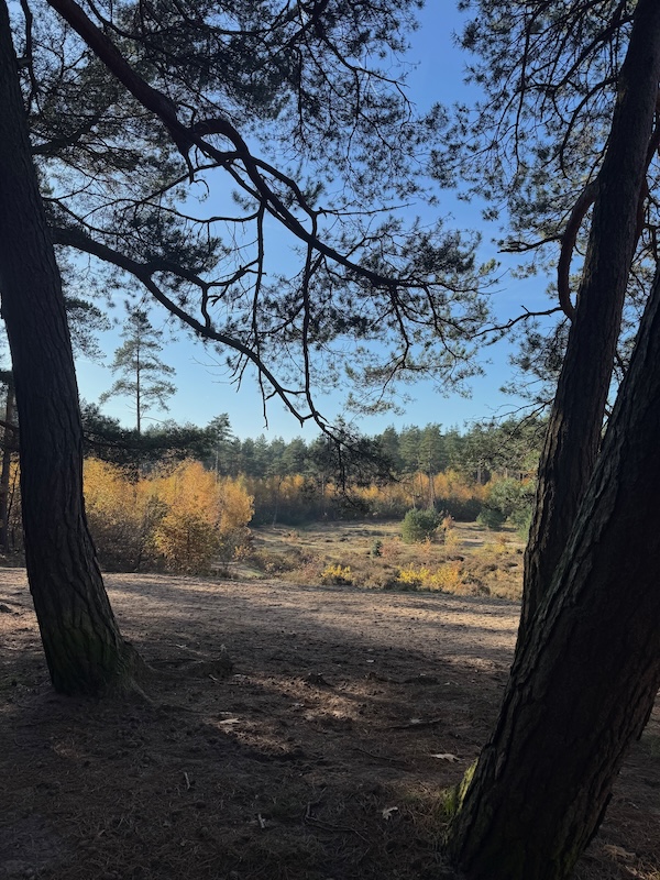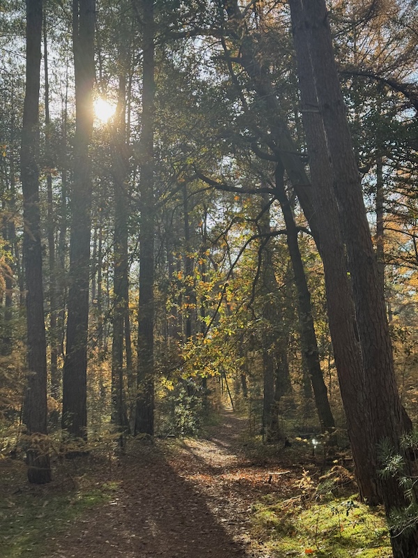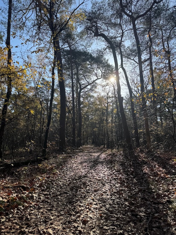 Het ruikt zo lekker in het bos! 🌳 en het is zo mooi met de kleuren en de lage zon. Dan door het bos heel lang rechtdoor. Was ik vergeten. Ik herkende wel grote stukken. Maar bij de Wolfsdreuvik is toch altijd weer even zoeken.