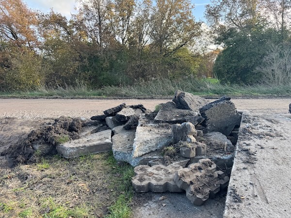 Volgens Vincent was het lekker warm buiten, maar mijn blote benen dachten daar heel anders over! Ik had het gewoon koud! Dan fiets ik maar harder om warm te worden. En het ging op een prima tempo! Voor de gravelbike tenminste. En voor mijn doen. En niet omdat ik wind mee had. Ik ontdekte pas op de weg langs het Oostv-veld dat de radar niet aan stond. 🙄 lekker over de klinkertjes en ik dacht: wat zouden ze doen met het fietspad wat tussendoor loopt? Gaat die ook op de schop? Dan neem ik die maar terug. Met het gevaar dat het druk is.