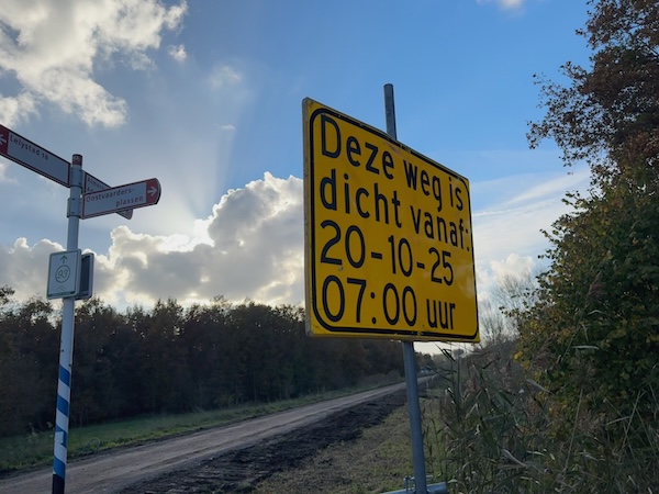 Er is niemand. De zon tegen, benen die hun best doen, geen pijntjes meer en niemand anders gezien. Ik ging wel ‘netjes’ terug over de Trekweg. Daar moet nu iedereen langs, dus er zijn drempels voor de auto’s.