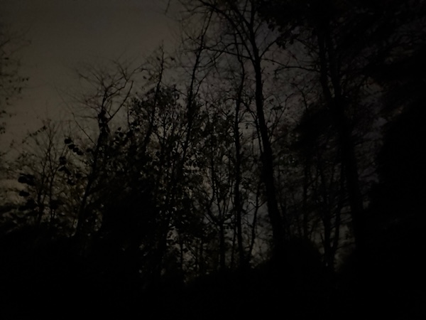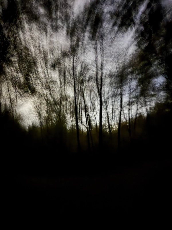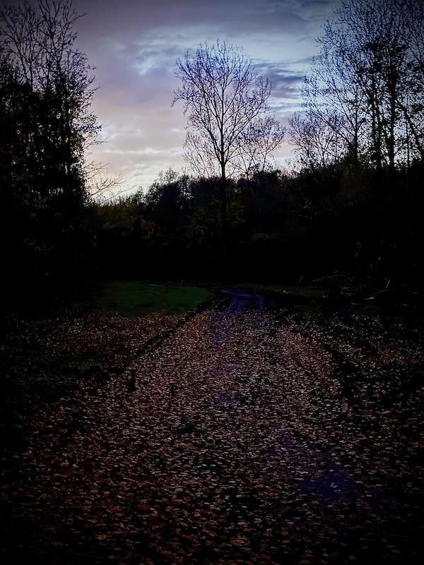 Ik heb de hele dag hard gewerkt. Bleven maar tickets en uitdagingen komen. Leuk, maar ook chaotisch. Ik ben zelf ook wat rommelig. Ik heb geen last van gister hoor, niet écht ergens pijn, meer overal een beetje. Zware benen van zitten en ongemotiveerd. Ik vind veel dingen nu effe moeilijk. Ouder worden is niks voor mij. Dat wil ik simpelweg niet. Na het werk is het donker en ik stap toch naar buiten. Het regent. En dat stopt ook weer. Ruim voor ik nat ben. Ik app wat, bedenk een hoop en tussen de bomenstaken op het oerbekende rondje vind ik rust. Ik vind het donker niet eng. Ik kom dan ook nauwelijks iemand tegen. Ik haal de stappen, scoor rust en voel me wat beter.