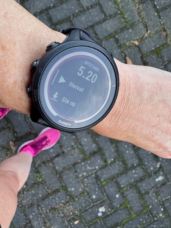 Kort-kort, zonnetje en gemak. Maar ik loop niet met een rustig en tevreden hoofd. Er zitten geen gedachten bij hoe mooi het is dat dit nog kan op mijn 52ste, dat ik fitter ben dan toen ik 25 was. Het komt niet in me op dat de meesten 50+ers dit echt niet kunnen. Ik zie wel de mooie kleuren, de schaduwen en het tempo is gewoon hoog (voor dit oudje), maar het voelt als iets wat ‘moet’. Van mezelf. Ik groet wel iedereen vrolijk en daar geniet ik van en dat het niet snel hoef te gaan. aan de andere kant: flink balen dat het zo snel gaat, want ik ben binnen een half uur makkelijk klaar. Ik besluit het tempo lekker hoog te houden en dan later maar iets van een half uur bij elkaar te liegen. Na 3km vind ik het best leuk, cool en stoer. In het park wordt het iets zwaarder, maar het tempo blijft hoog. Het is precies 5,2km! Hoppa.