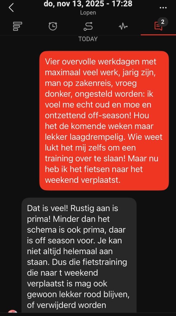 Ik heb slecht geslapen, veel liggen draaien en piekeren. Viel heel vroeg in slaap, maar midden in de nacht uren wakker. Daar ben ik vermoeid van. En wat prikkelbaarder. En overdag pieker ik ook verder. Komt er opeens weer een verbazingwekkende reactie binnen via Strava. Ik word er echt gek van!