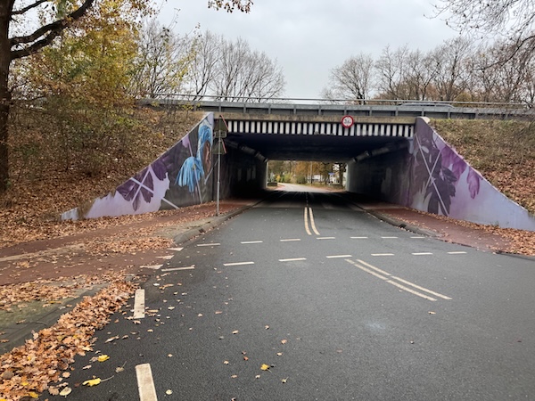 Maar ondertussen de route ook volgen en kijken ging niet vanzelf. Ik miste een pad en wilde terug naar het huis. De tijd drong. En ik moest intussen wat. Langs Simac (grappig paadje) en dan oversteken. Ik heb minútenláng voor de stoplichten gestaan!